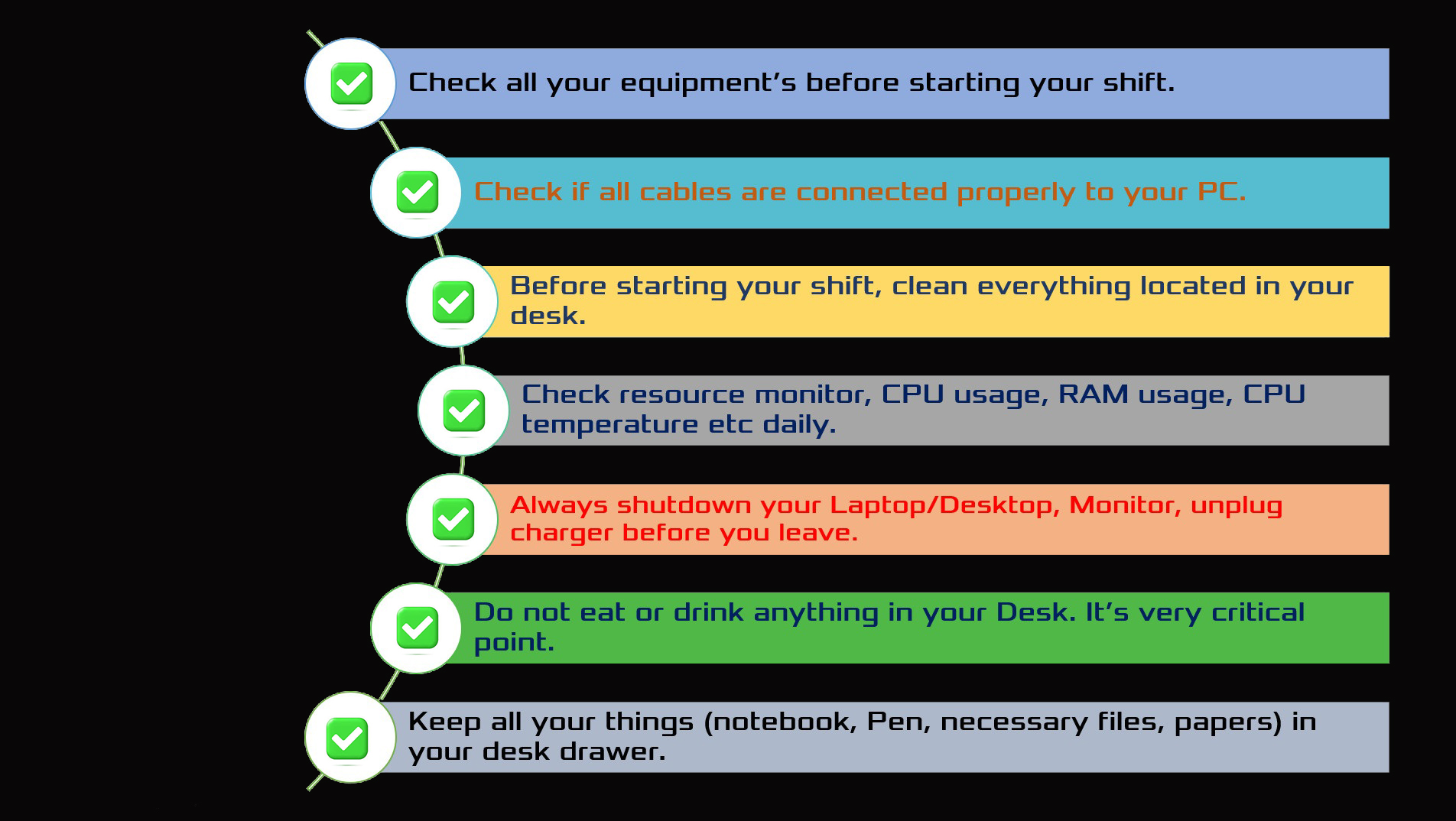 as discussed i dont see this in action yet. lets get this into action please, id like to see people maintaing their workspace and laptops