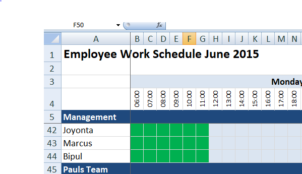 so basically rob shift is 09:00 - 00:00, but this work schedule shows what work rob is doing during his full shift.