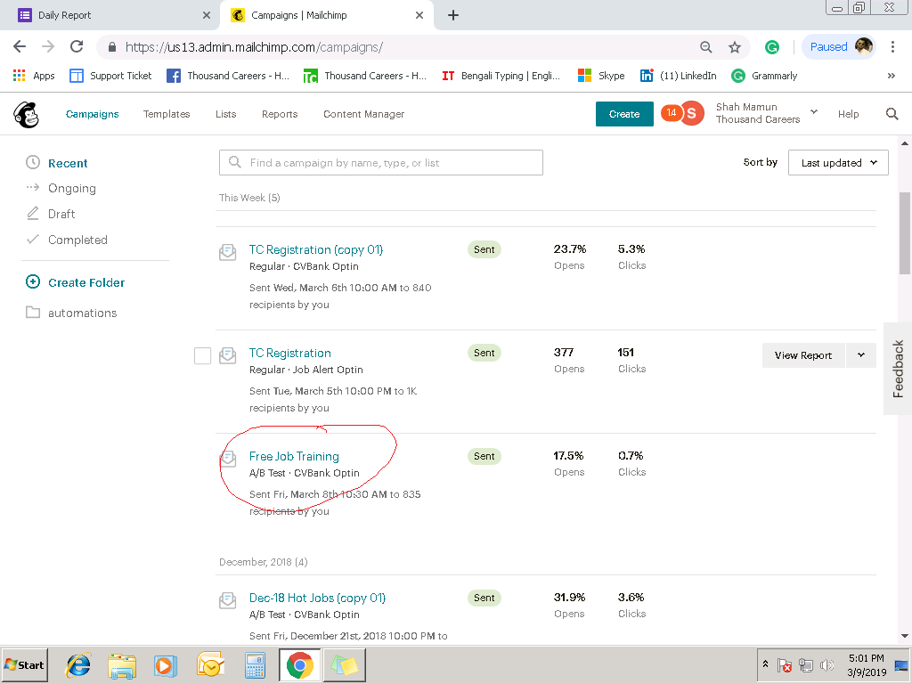 Mamun sent the email newsletter from Mailchaim database. I attach a screenshot of his last action.
