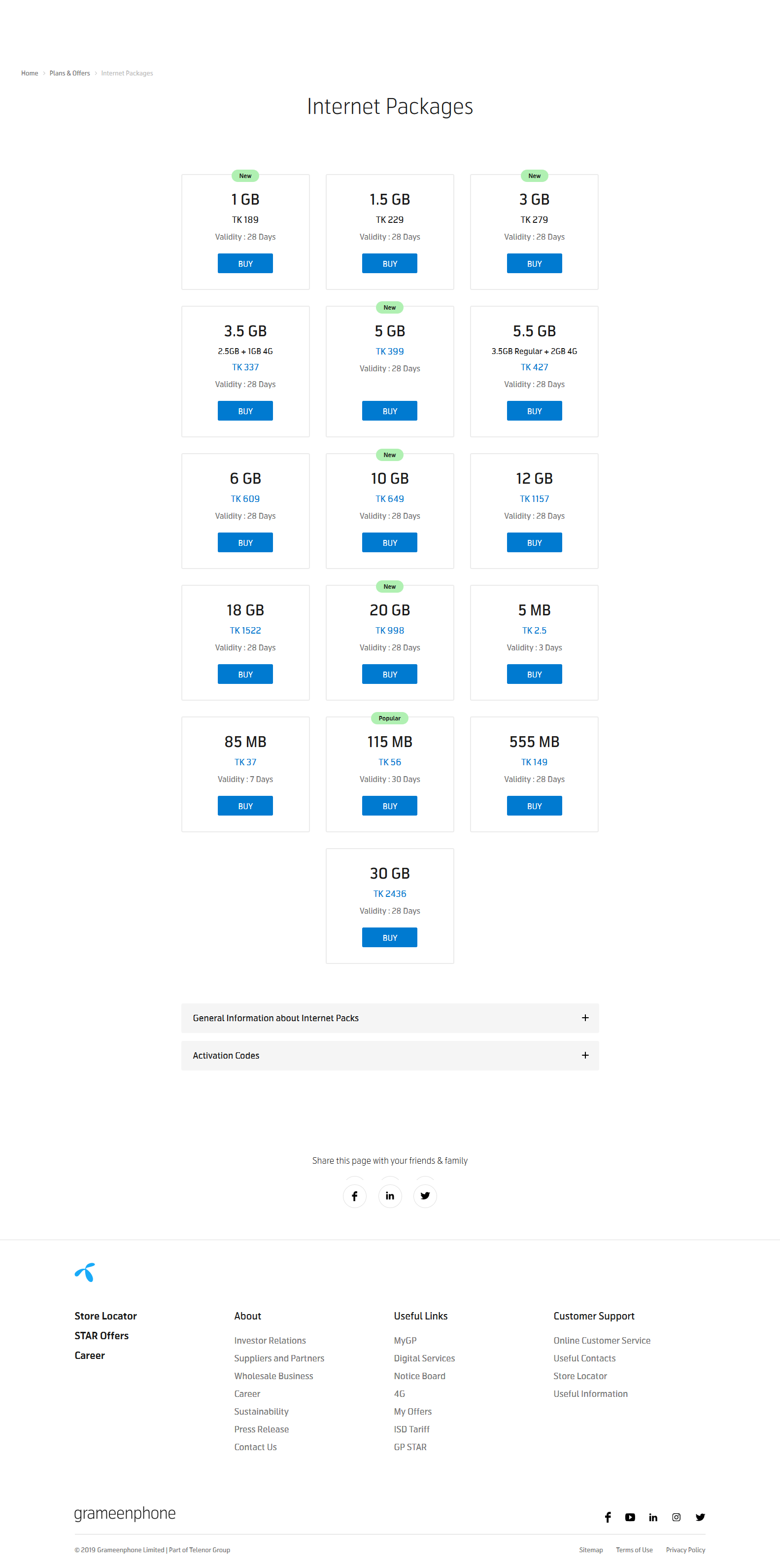 Last time when we discussed about Mobile internet costing, we were considering Mobile data just for weekends. Now as Aung asked for fulltime Mobile internet, so costing will change as well. Please check the attach screenshots which contains Mobile internet pack costing for Grameenphone.
