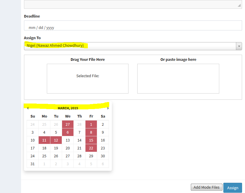 Calendar on assign Task
