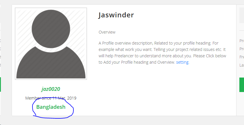 i need to see buyer LOCATION on buyer profile. in green writing.