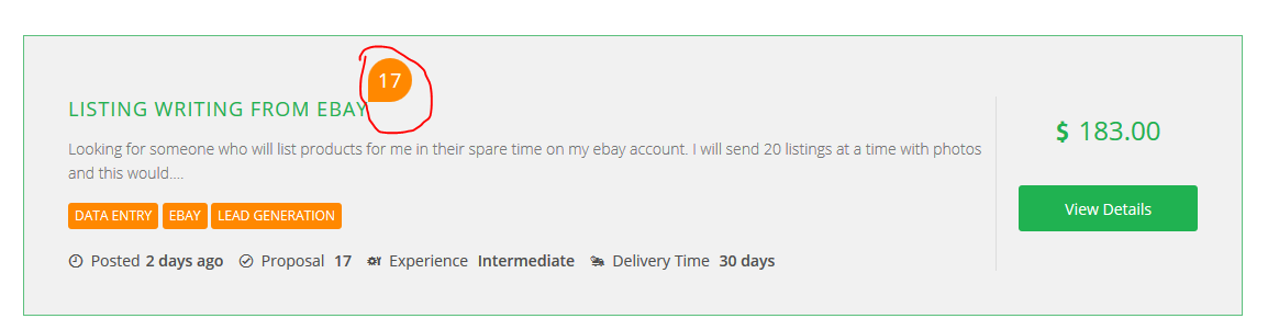 you need to add the total bid number on project listing showin the screenshot below.