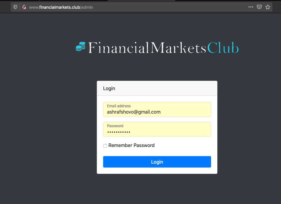 Admin URL : http://www.financialmarkets.club/admin