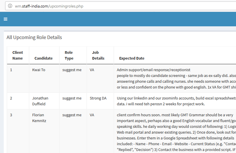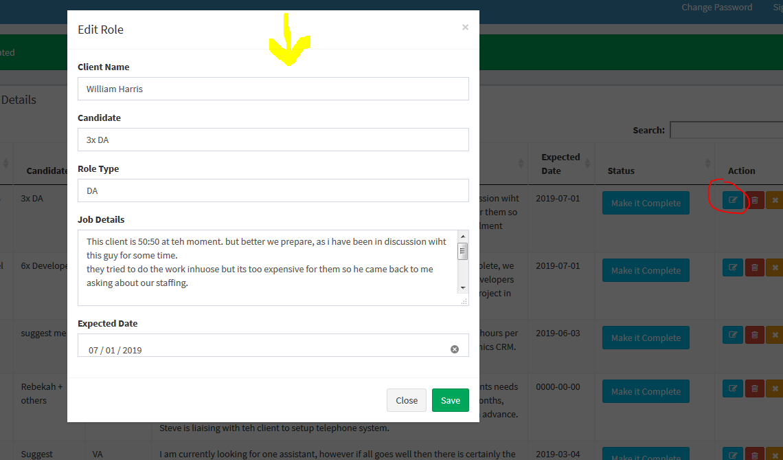 on upcoming roles page, i need EDIT option to update any field.