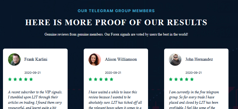 Hundreds of traders are joining our Forex Trading Signals daily. We build trust with our Forex Signals by only giving a Trade Signal when we are really confident and we will do it on our own account. Our signals are supplied by professional traders who have over 20 years experience in the Forex Market