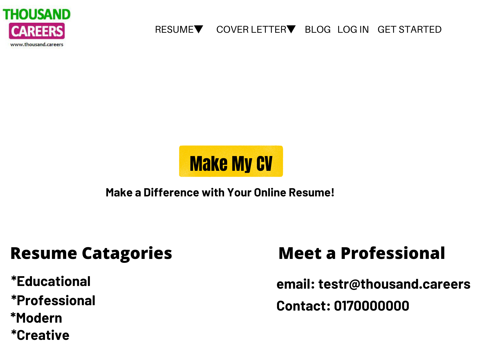 Online CV Maker landing page for TC