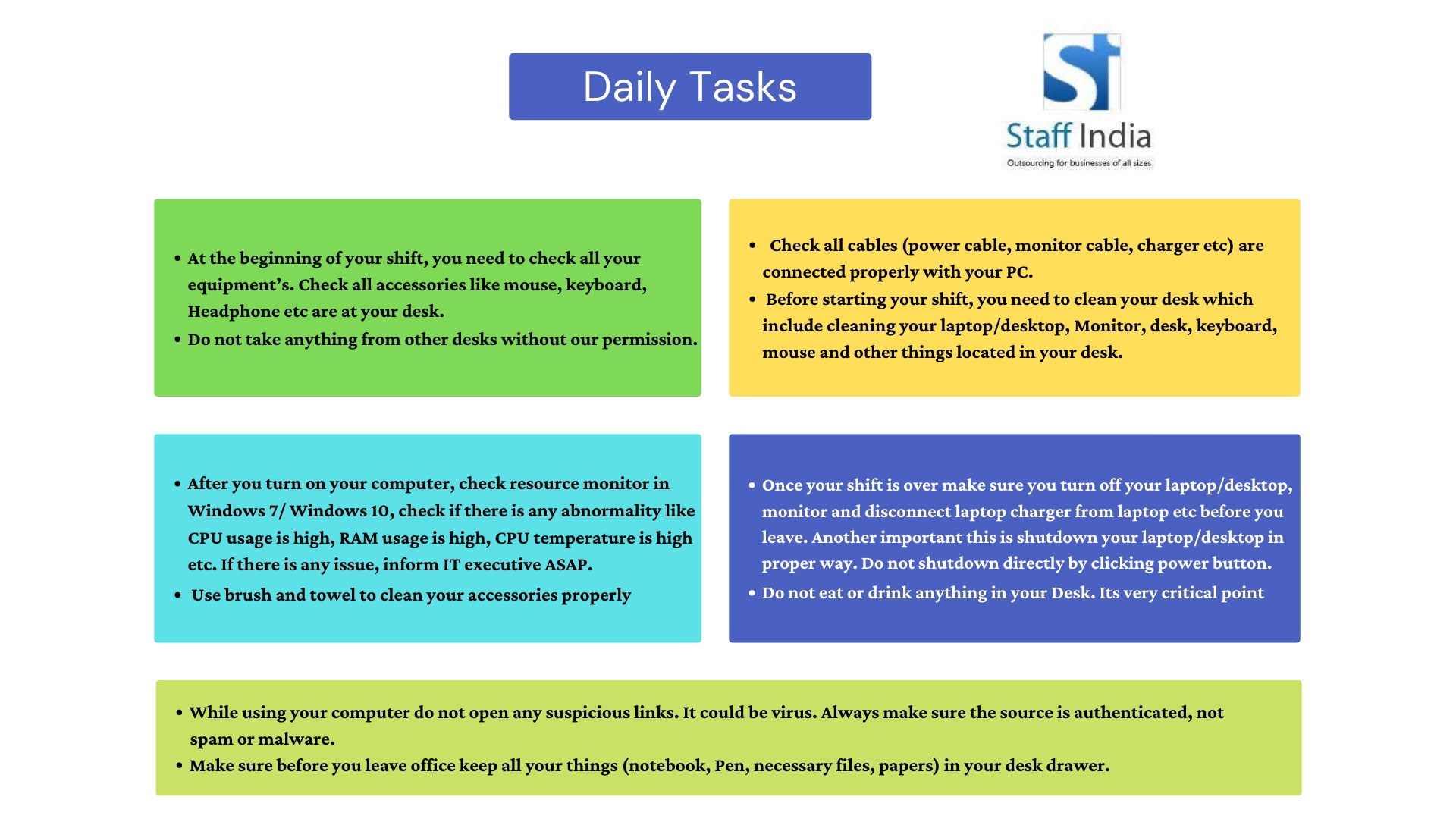 as discussed i dont see this in action yet. lets get this into action please, id like to see people maintaing their workspace and laptops