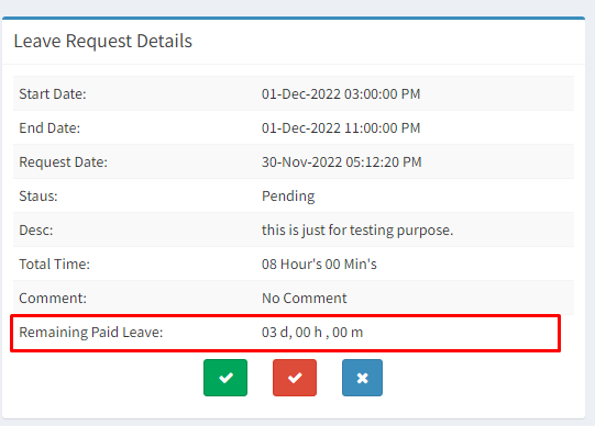 We need to add the "Remaining Paid Leave" field on the leave request so that we can see how many leaves one has left.