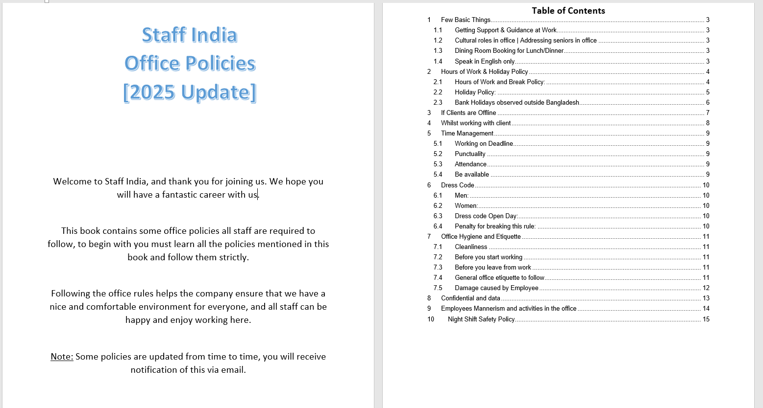 A policy book printout will enable them to know all our policies and follow. this also mean nobody can give excuse that they didnt know.